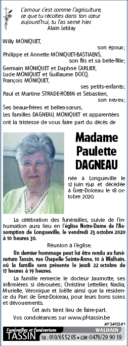 Décédée à Longueville (1325) le dimanche 18 octobre 2020 à l'âge de 79 ans
