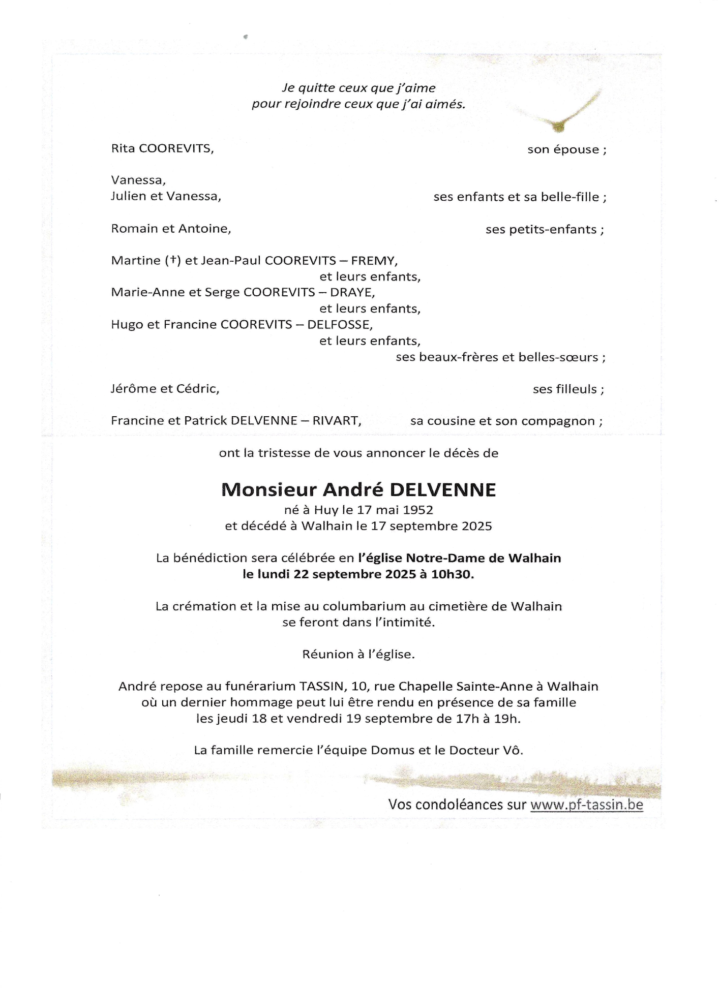 Décédé à Walhain (1457) le mercredi 17 septembre 2025 à l'âge de 73 ans