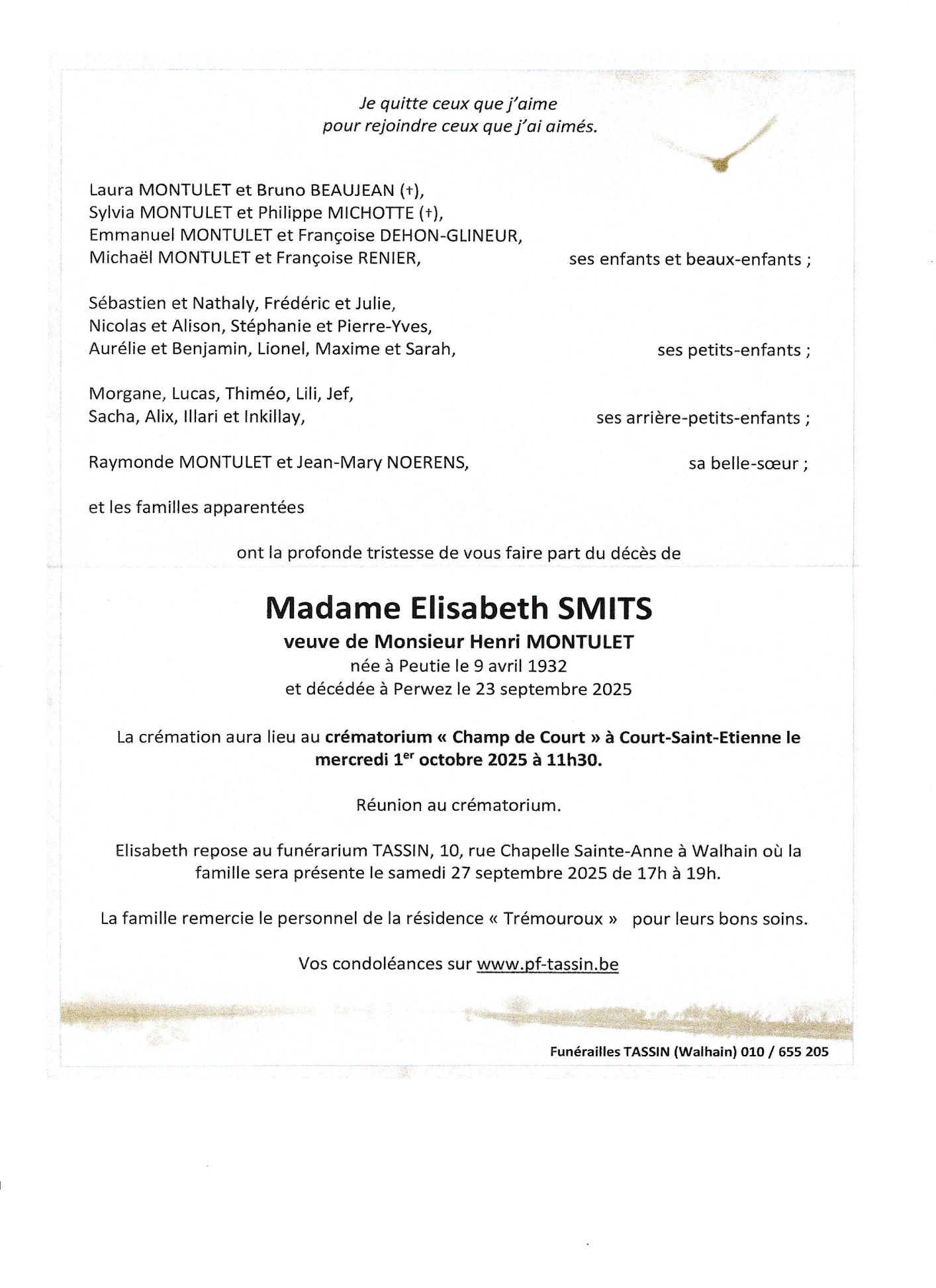 Décédée à Perwez (1360) le mardi 23 septembre 2025 à l'âge de 93 ans