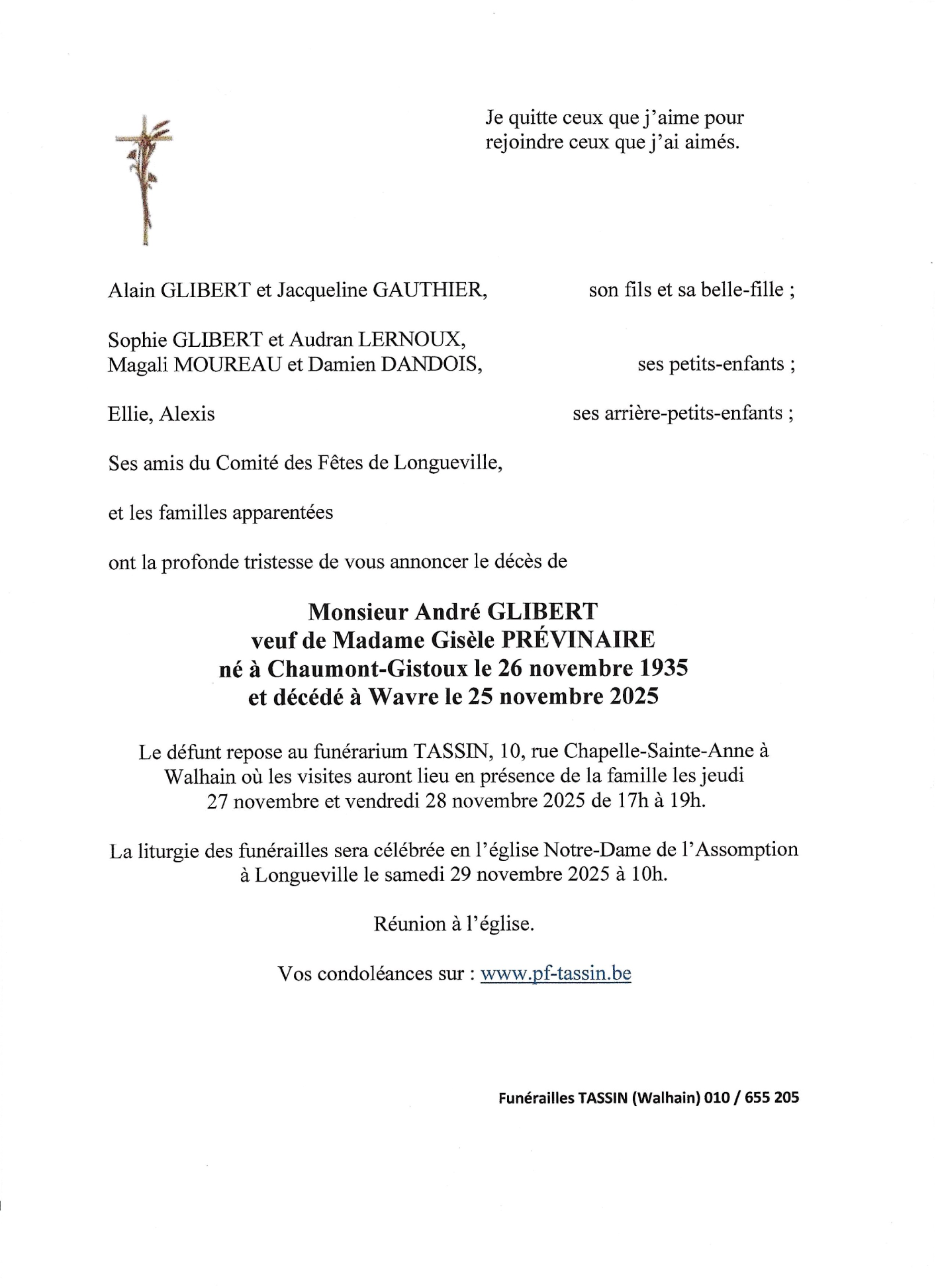 Décédé à Wavre (1300) le mardi 25 novembre 2025 à l'âge de 89 ans