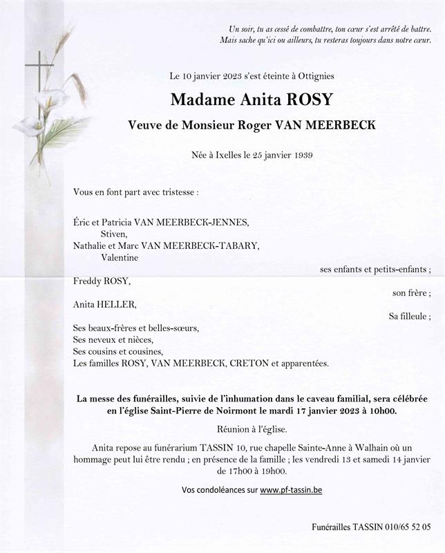 Décédée à Ottignies (1340) le mardi 10 janvier 2023 à l'âge de 83 ans