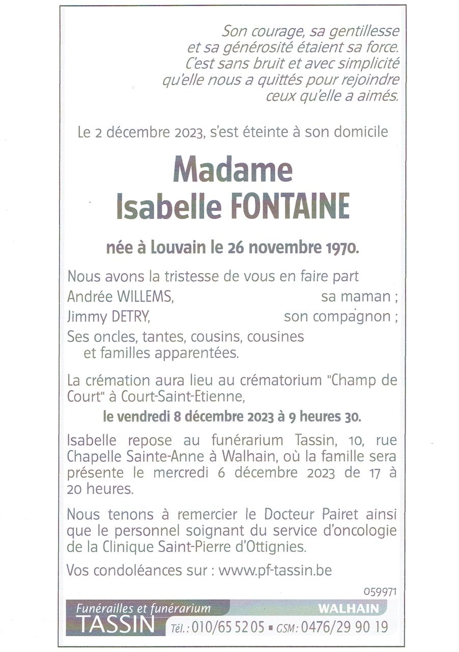 Décédée à Walhain (1457) le samedi 2 décembre 2023 à l'âge de 53 ans