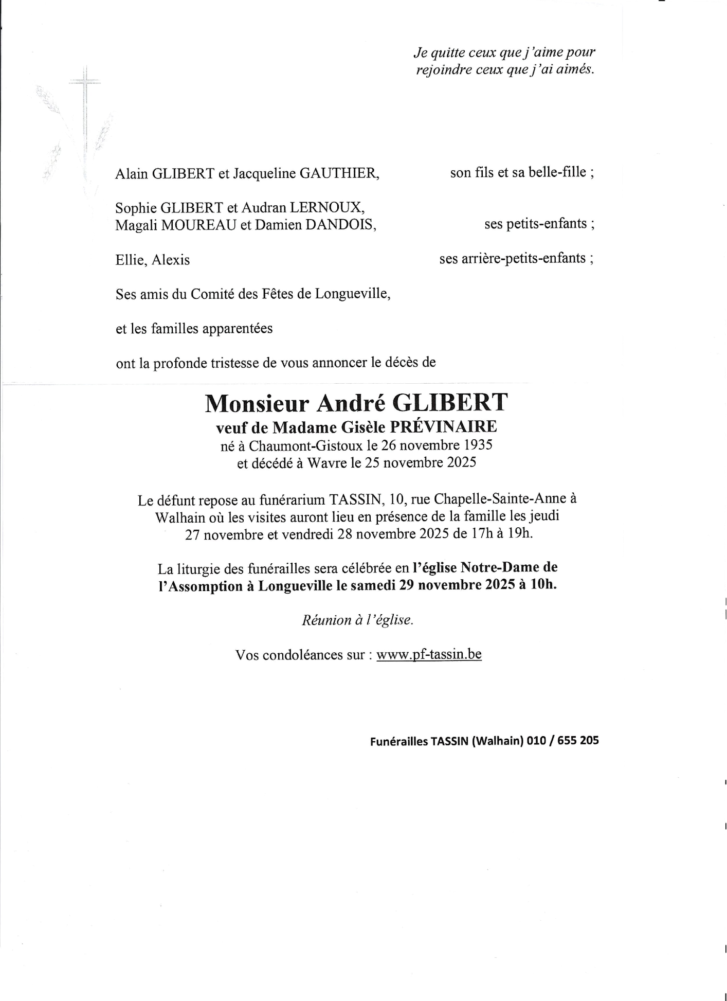 Décédé à Wavre (1300) le mardi 25 novembre 2025 à l'âge de 89 ans