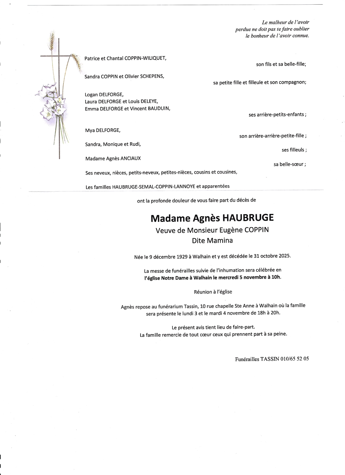 Madame Agnès (Mamina) COPPIN née HAUBRUGE