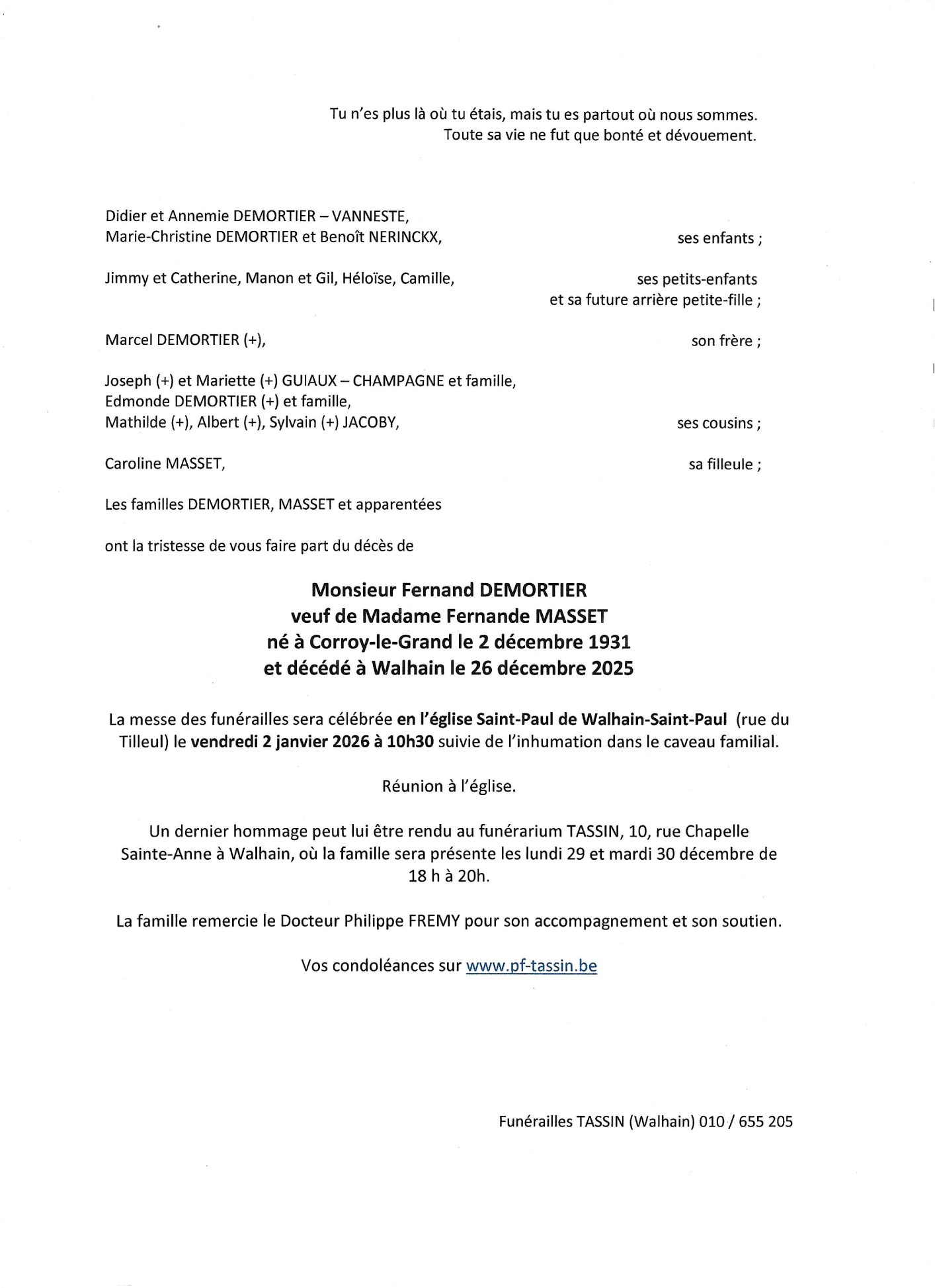 Décédé à Walhain (1457) le dimanche 28 décembre 2025 à l'âge de 94 ans