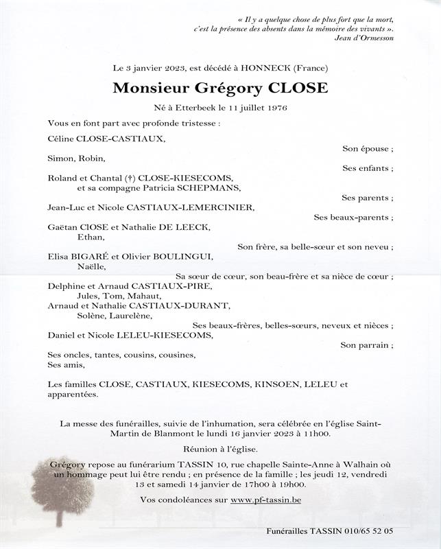 Décédé à Stosswihr (68140, France) le mardi 3 janvier 2023 à l'âge de 46 ans