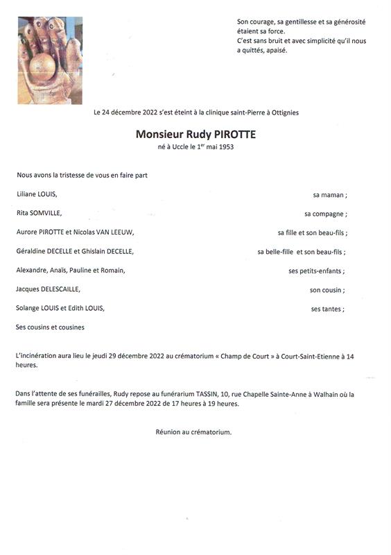 Monsieur Rudolphe "dit Rudy" PIROTTE